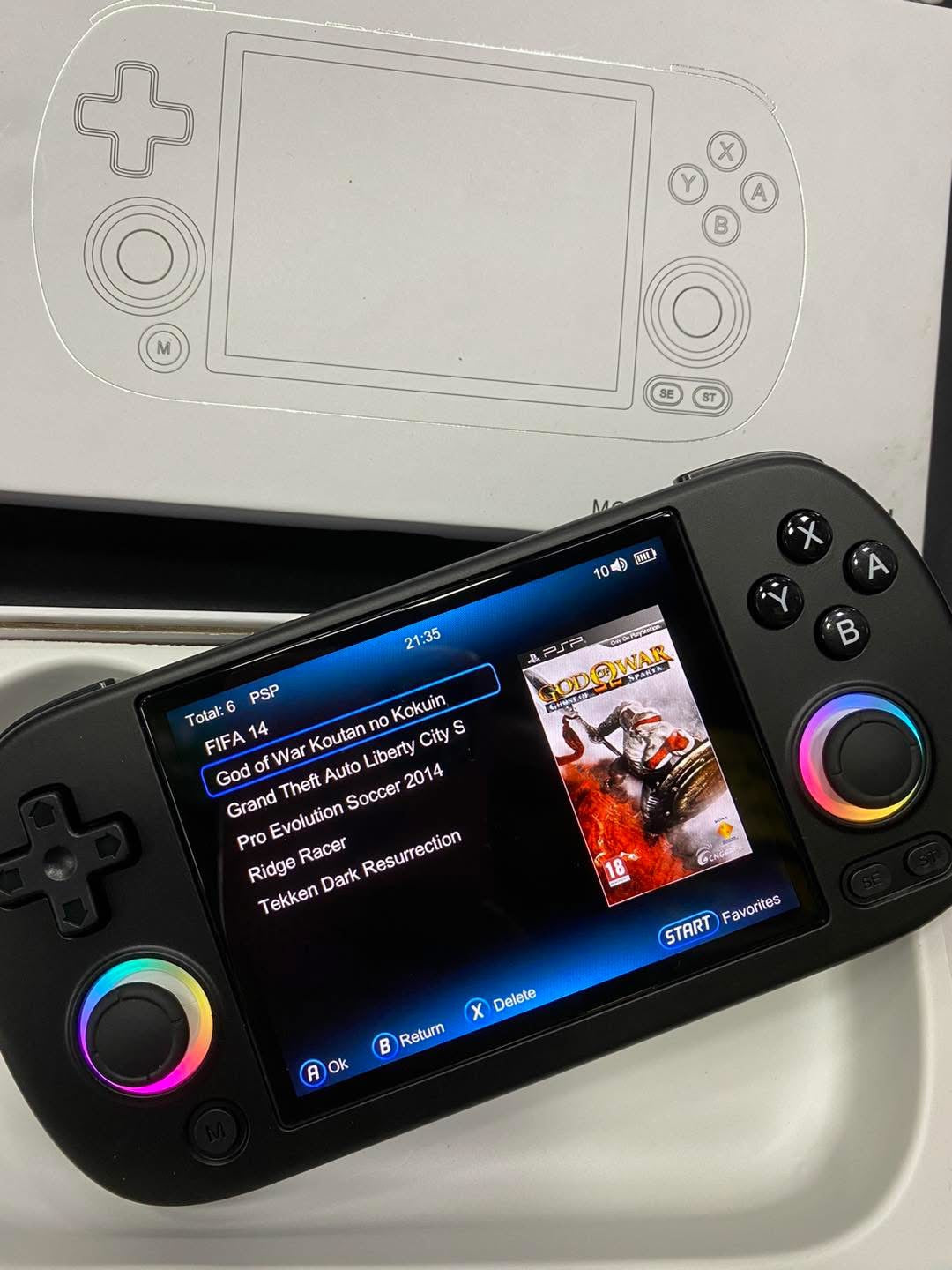 - Avec un éclairage de joystick coloré RVB et un anneau lumineux RVB de 16 millions de couleurs, la machine est livrée avec une luminosité constante, une respiration, un arc-en-ciel, un cycle arc-en-ciel, une poursuite de la lumière, un jeu et d'autres modes, et peut personnaliser la couleur et ajuster la luminosité. De plus, la console de jeu est équipée d'un angle de vision complet IPS de 4,0 pouces, l'OCA est entièrement installé et l'écran est très clair. La résolution 640480 offre des effets visuels nets et vibrants, et vous pouvez voir plus de détails et de belles scènes dans le jeu.