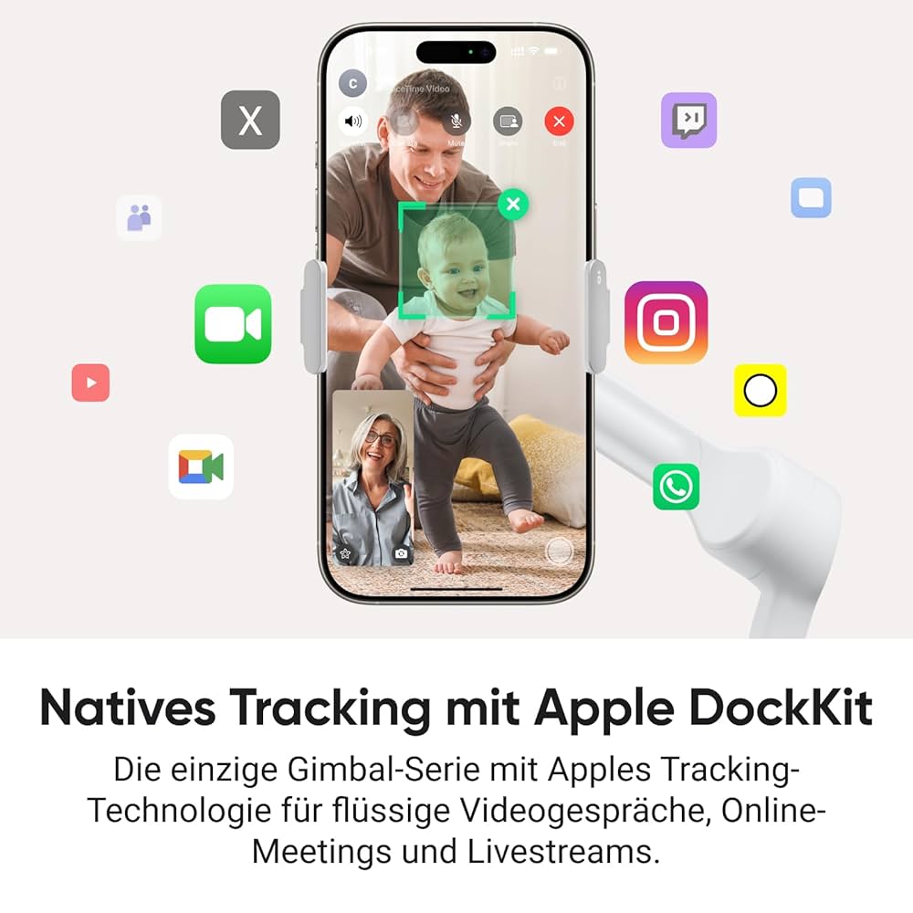 - Suivi polyvalent dans plus de 200 applications iOS : la première et unique gamme de stabilisateurs avec Apple DockKit*. Un stabilisateur avancé pour iPhone et l'outil idéal pour la création de contenu, les appels vidéo, les réunions en ligne, les diffusions en direct et bien plus encore, avec plus de 200 applications iOS compatibles.