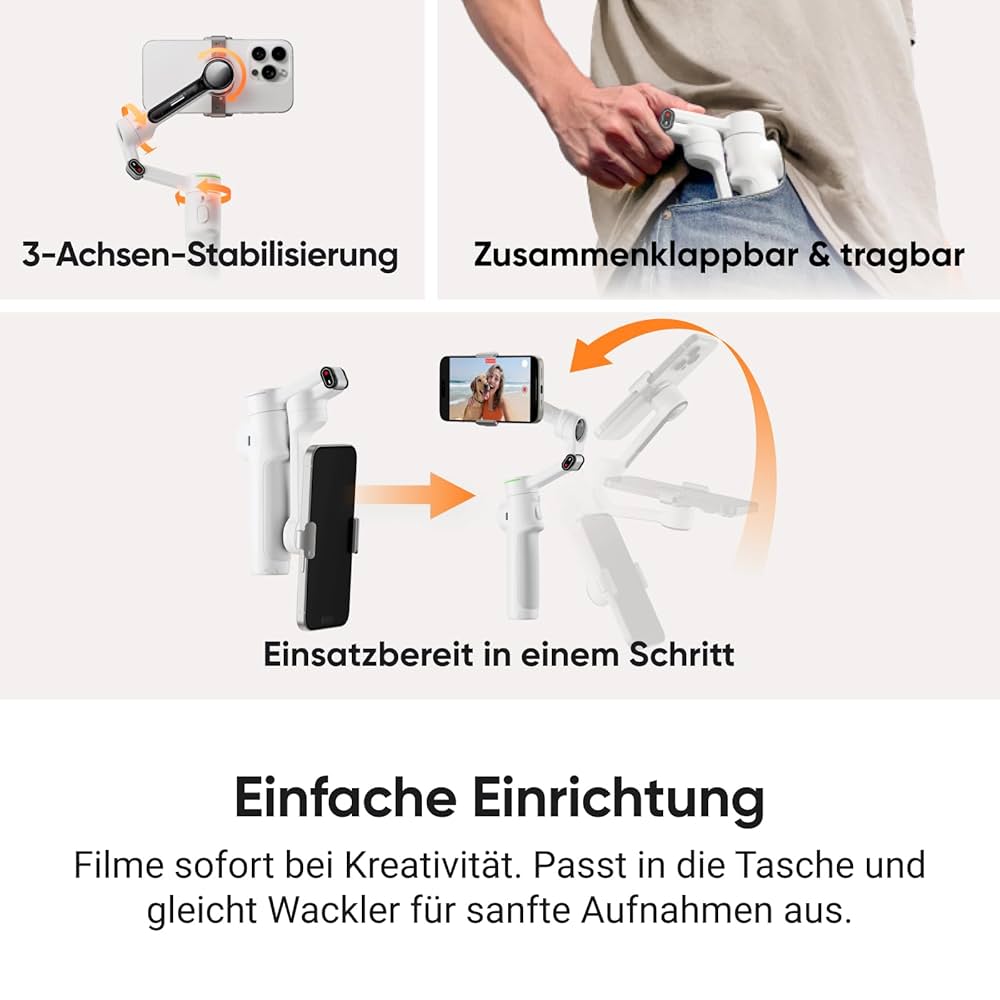 - Installation facile et images stables : fixez votre téléphone, dépliez-le et ce stabilisateur est prêt à l'emploi. La stabilisation sur 3 axes garantit une prise de vue fluide, quelle que soit la situation.